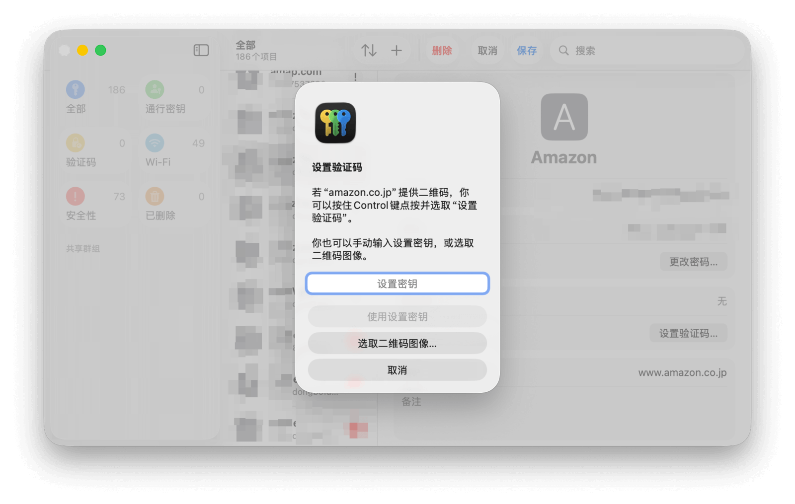 目前,苹果、任天堂、三星、Dropbox 等许多网站账户都已支持两步验证,密码 app 也内置了验证码生成器。在密码 app 中切换到「验证码」页面,点击列表右上方的「+」按钮,就可以通过设置密钥或扫描二维码来添加两步验证。完成后,密码 app 会每 30 秒生成一个新验证码,可直接点击拷贝使用。