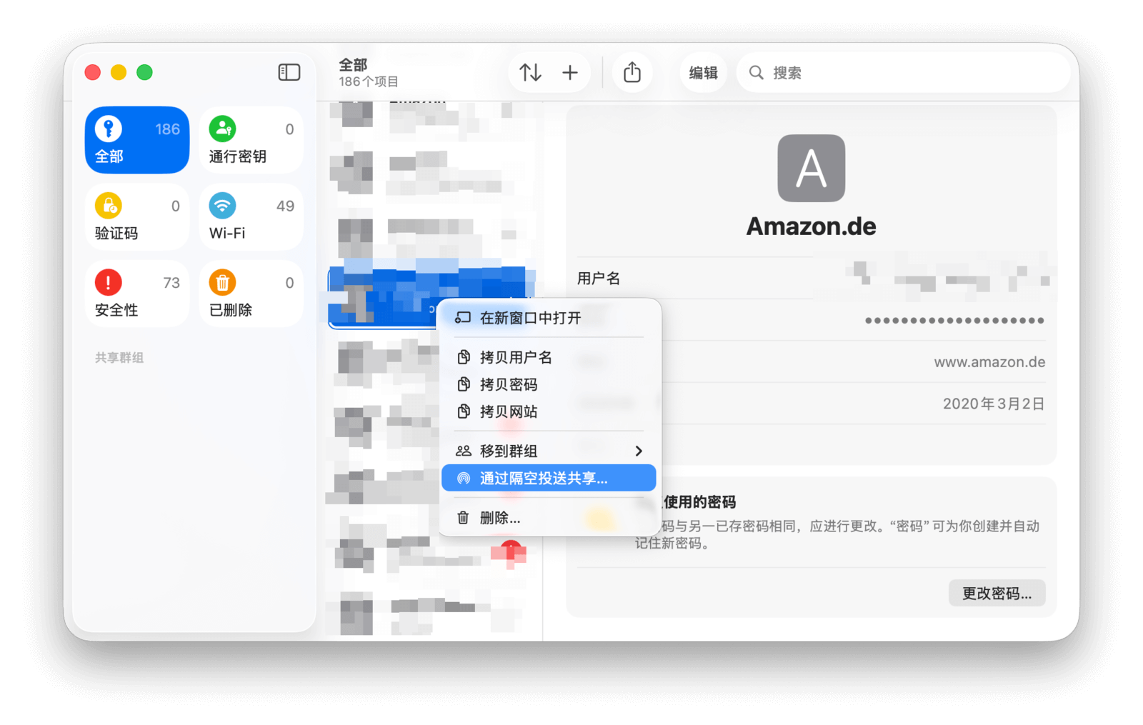 有时候,我们想把密码共享给朋友,但通过社交软件发送总觉得不安全。借助隔空投送,你可以方便地在 macOS、iOS 设备之间传送密码,并能真正做到「发完即焚」,不必担心密码泄露。