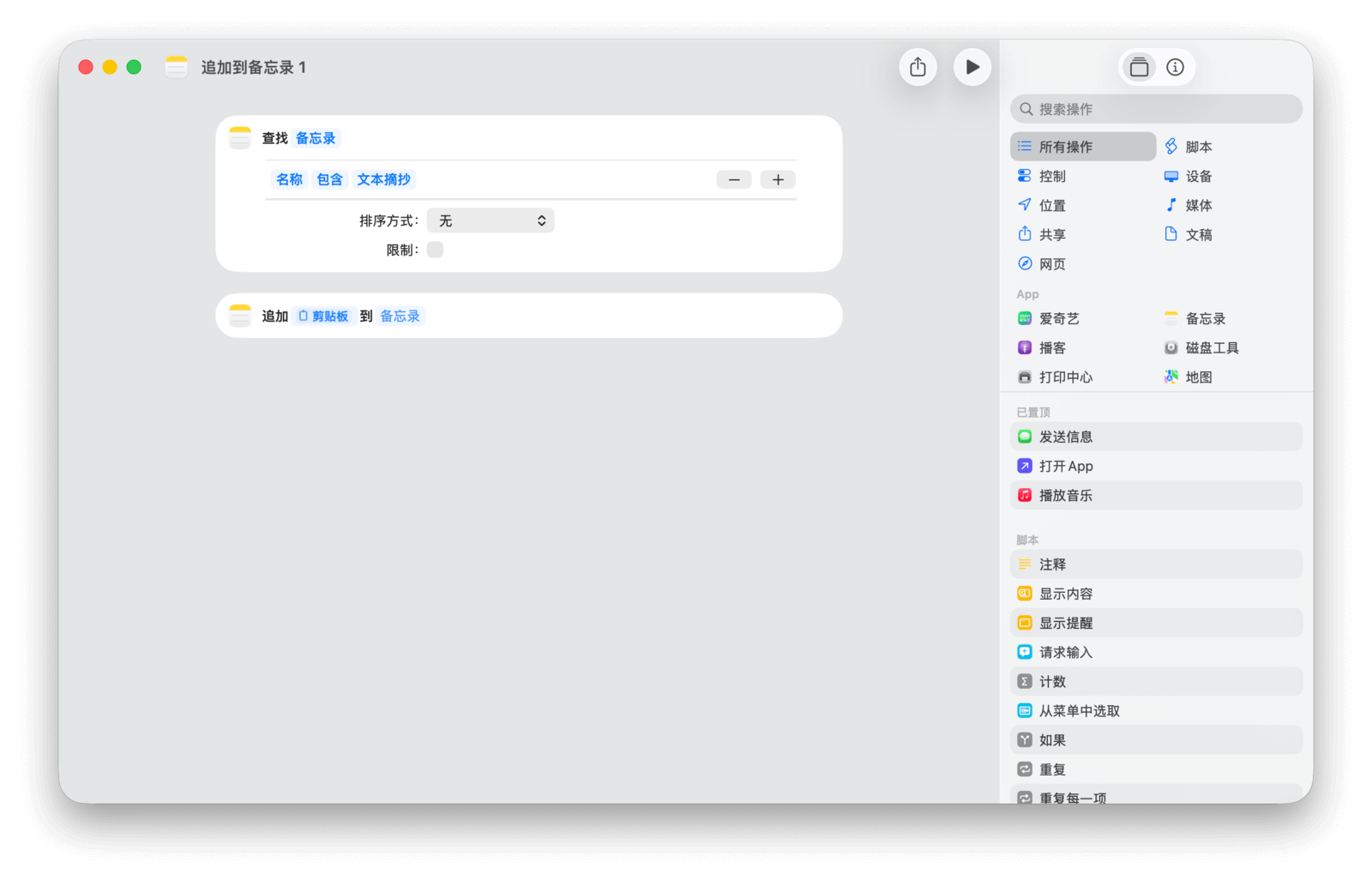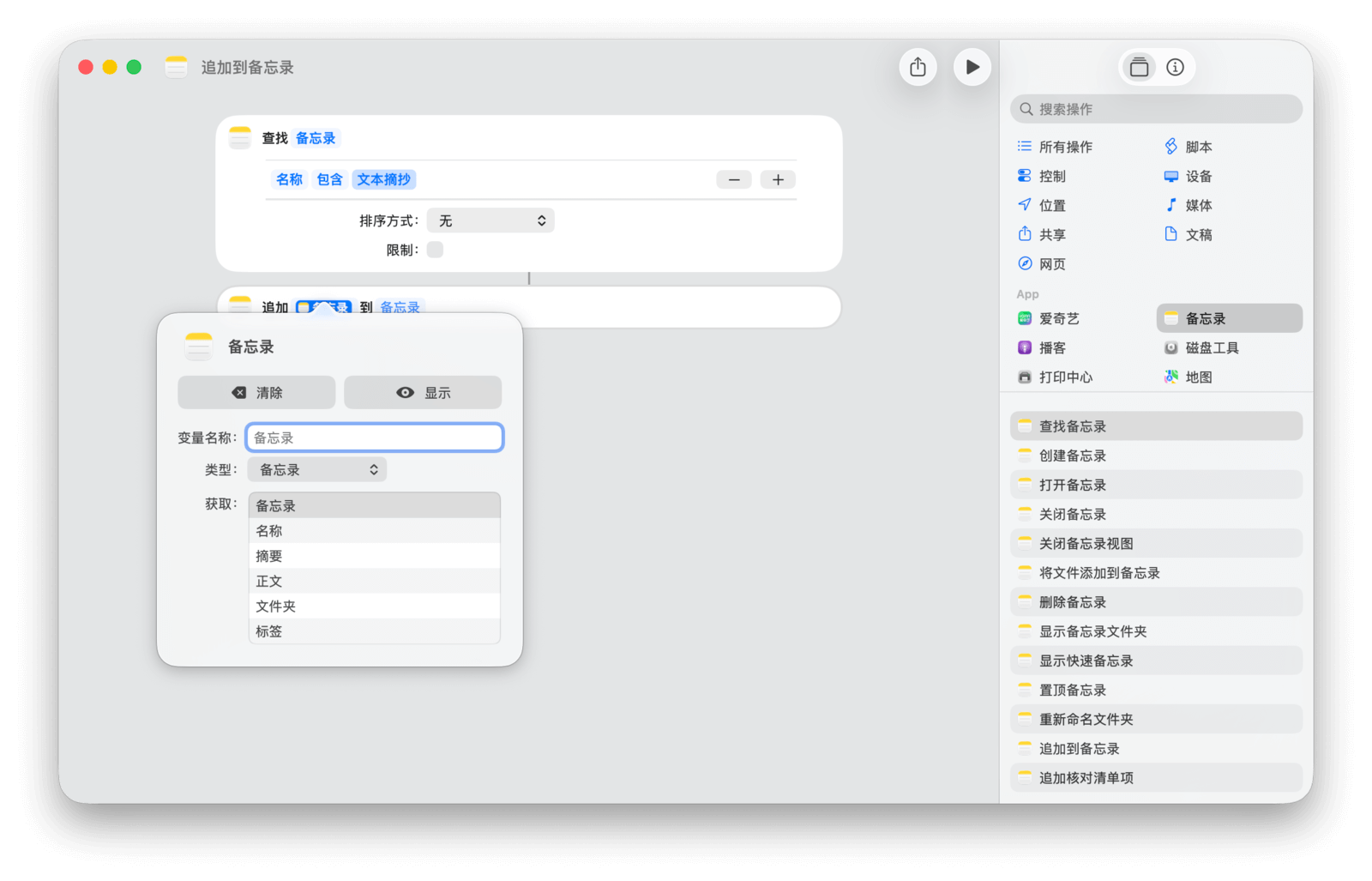 你或许会发现,这里并没有可以填入备忘录名称变量的地方。要实现这个功能,就需要对快捷指令做一些修改。