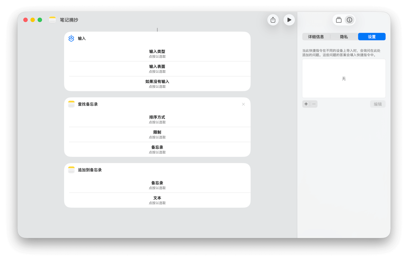 这样,一个简单的「笔记摘抄」快捷指令就完成了。