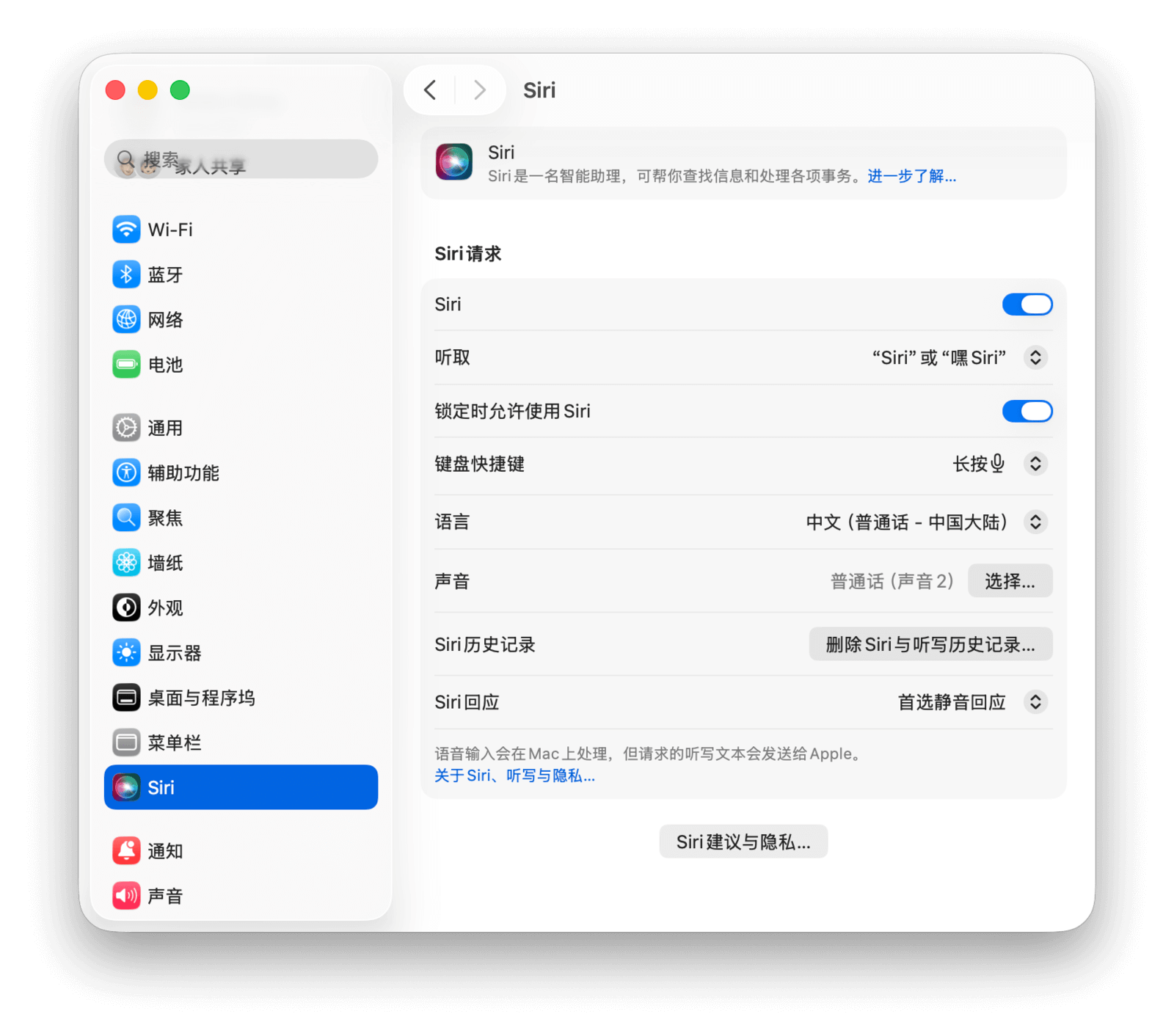 最后一步是确认 Siri 功能已开启。前往「系统设置 > Siri 与聚焦」,确保「询问 Siri」功能处于打开状态。之后,你只需对着 Mac 说:「嘿 Siri,[快捷指令名称]」,即可运行相应的快捷指令。