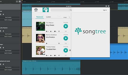 n-Track Studio 将云存储和音乐协作功能集成到您的 DAW 环境中。内置的 Songtree 应用让您可以与他人在线合作创作音乐:邀请其他音乐人加入您的项目,或为他人创作的歌曲贡献力量。您还可以将无限量的混音文件免费存储在 Songtree 上。