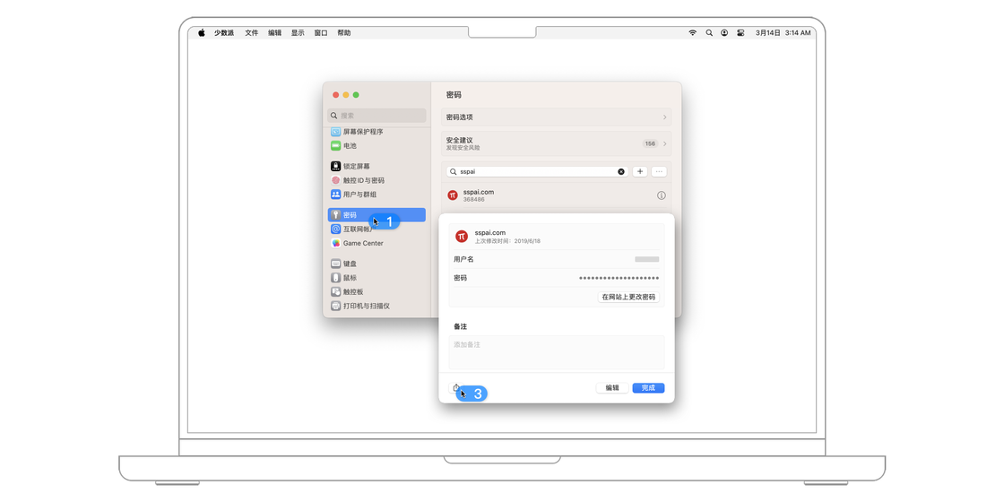 其实,在苹果的操作系统中就内置了一个简洁易用的密码管理器:「密码与钥匙串」。 macOS 系统自然也不例外。你可以在钥匙串中保存你的帐号和密码,还可以通过 iCloud 进行同步,在各个苹果平台上进行使用,且保持连贯统一的使用体验。